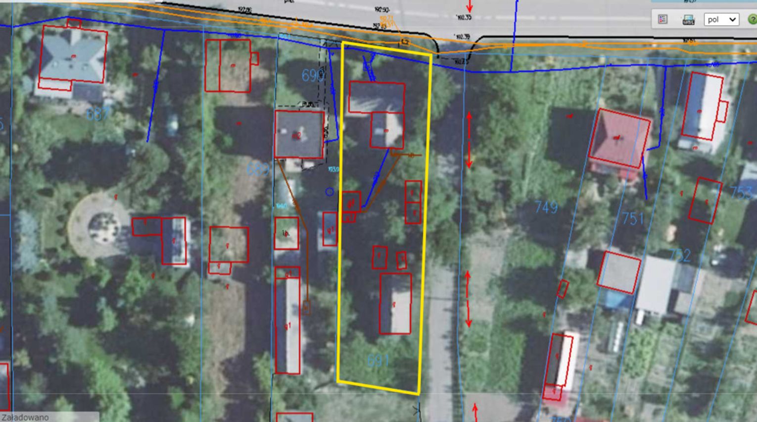 Nieruchomość składająca się z działki o powierzchni 0,10 ha zabudowana jest drewnianym domem około 80 m2 z dobudówką (murowaną) oraz drewnianymi budynkami gospodarczymi. Większość jest w złym stanie technicznym, część wymaga rozbiórki. Przy domu znajduje się również piwnica ziemna.
