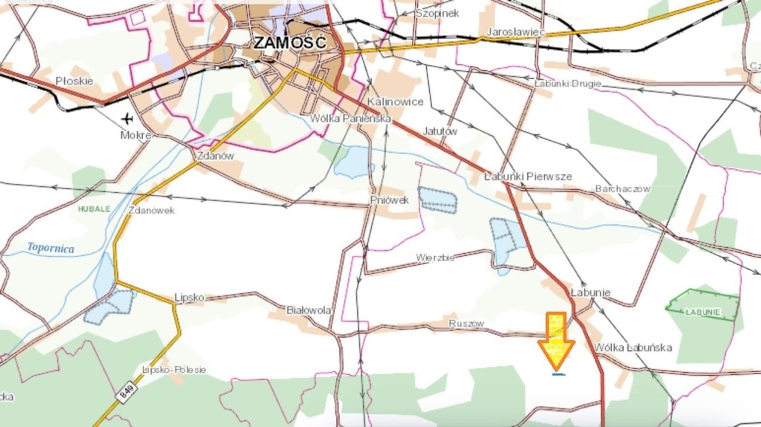 Działka znajduje się w miejscowości Łabunie, w odległości około 10 km od miasta Zamość. Jest to spokojna okolica, z dala od zgiełku.. Bliskość komunikacji.
