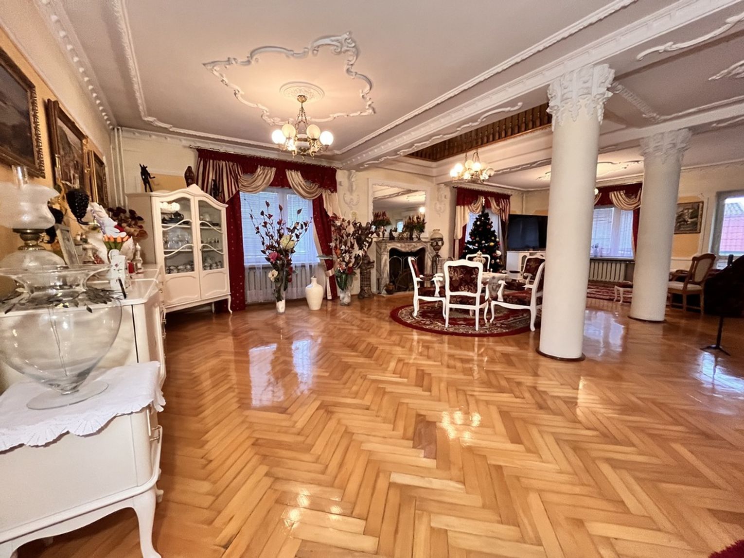 - parkiety drewniane na podłogach