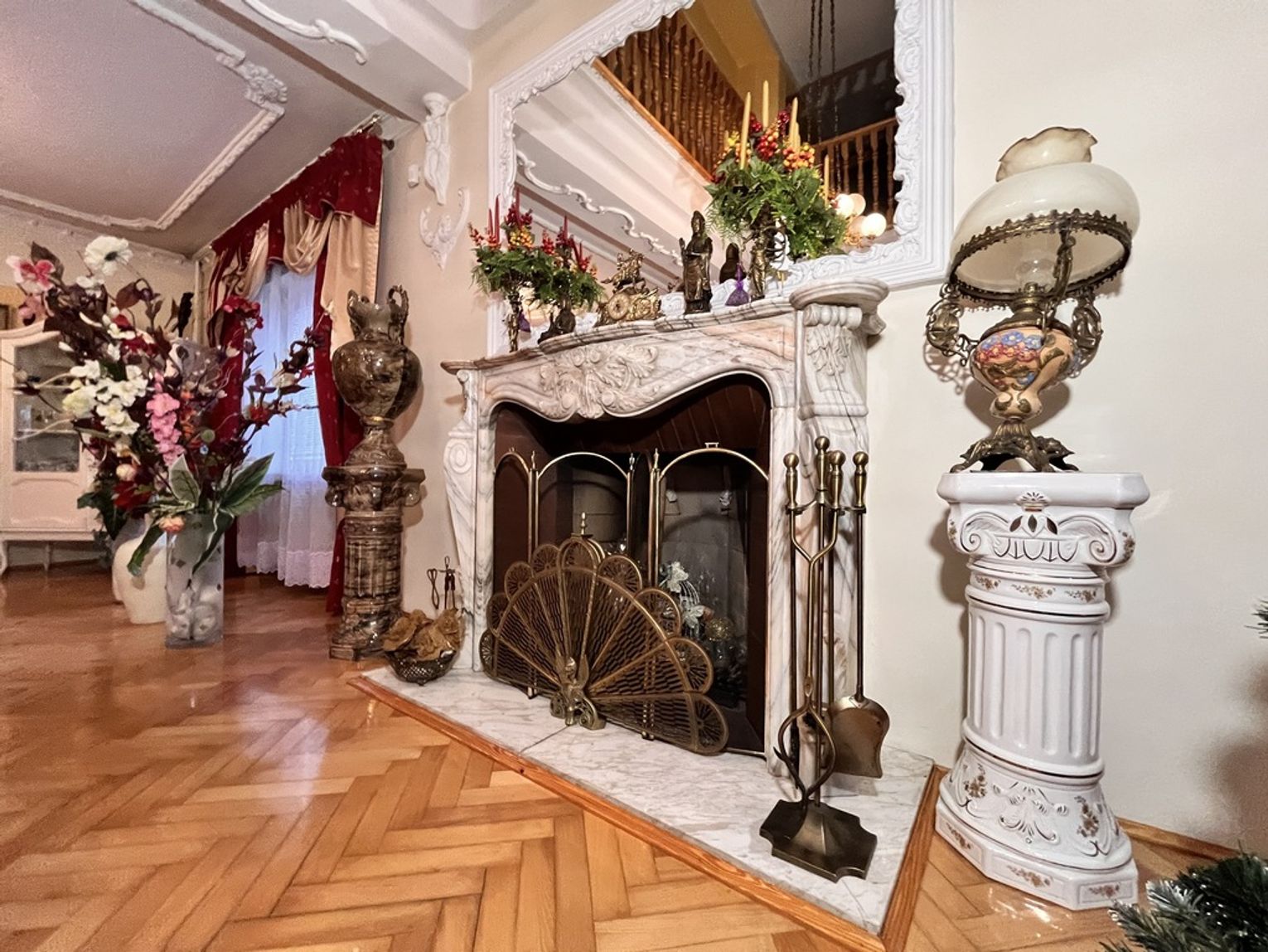 - stylowy kominek w stylu francuskim, wykonany z naturalnego kamienia