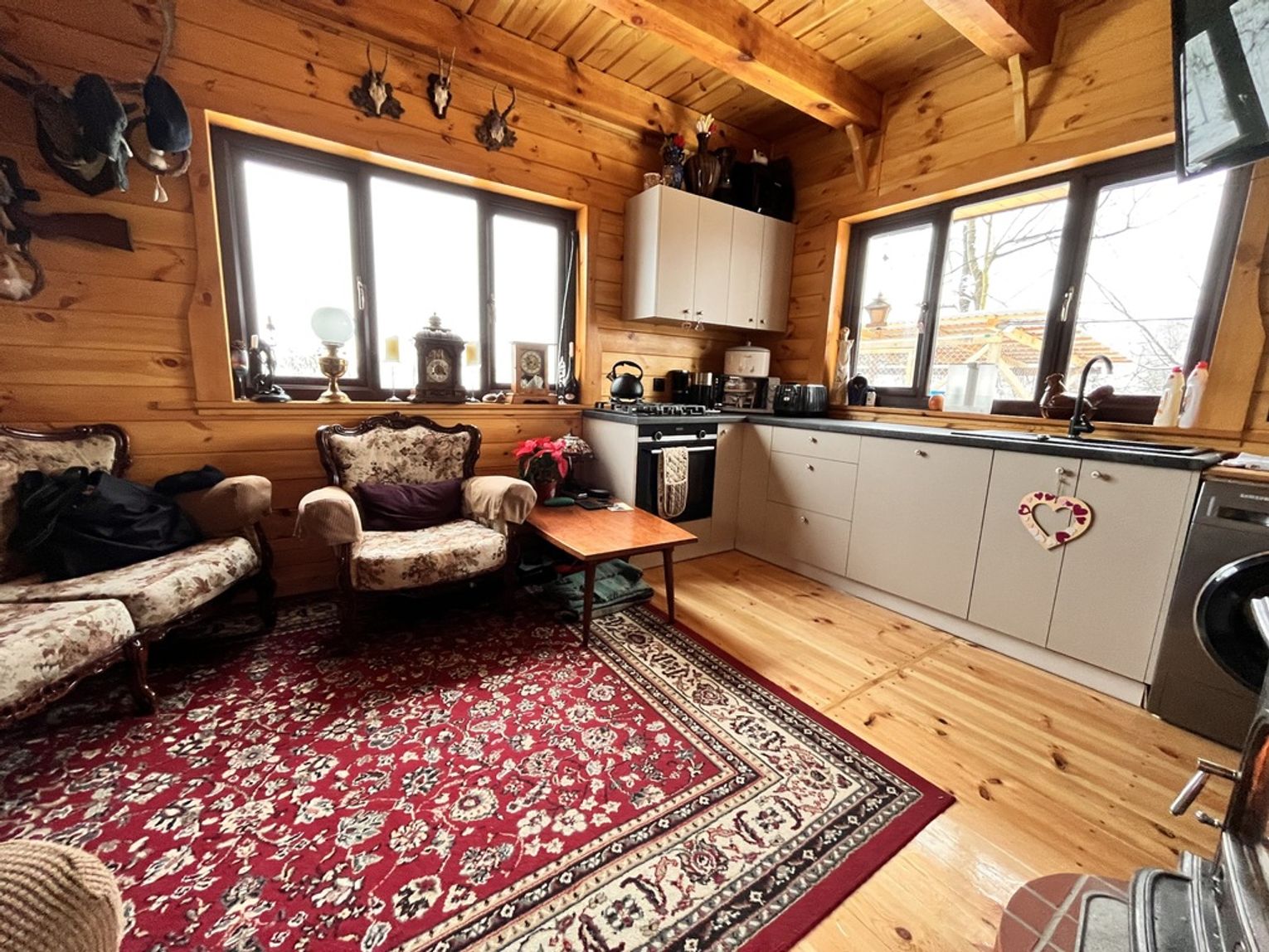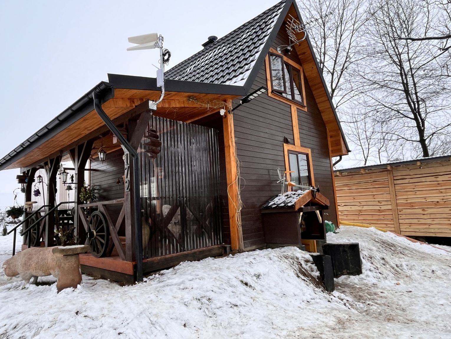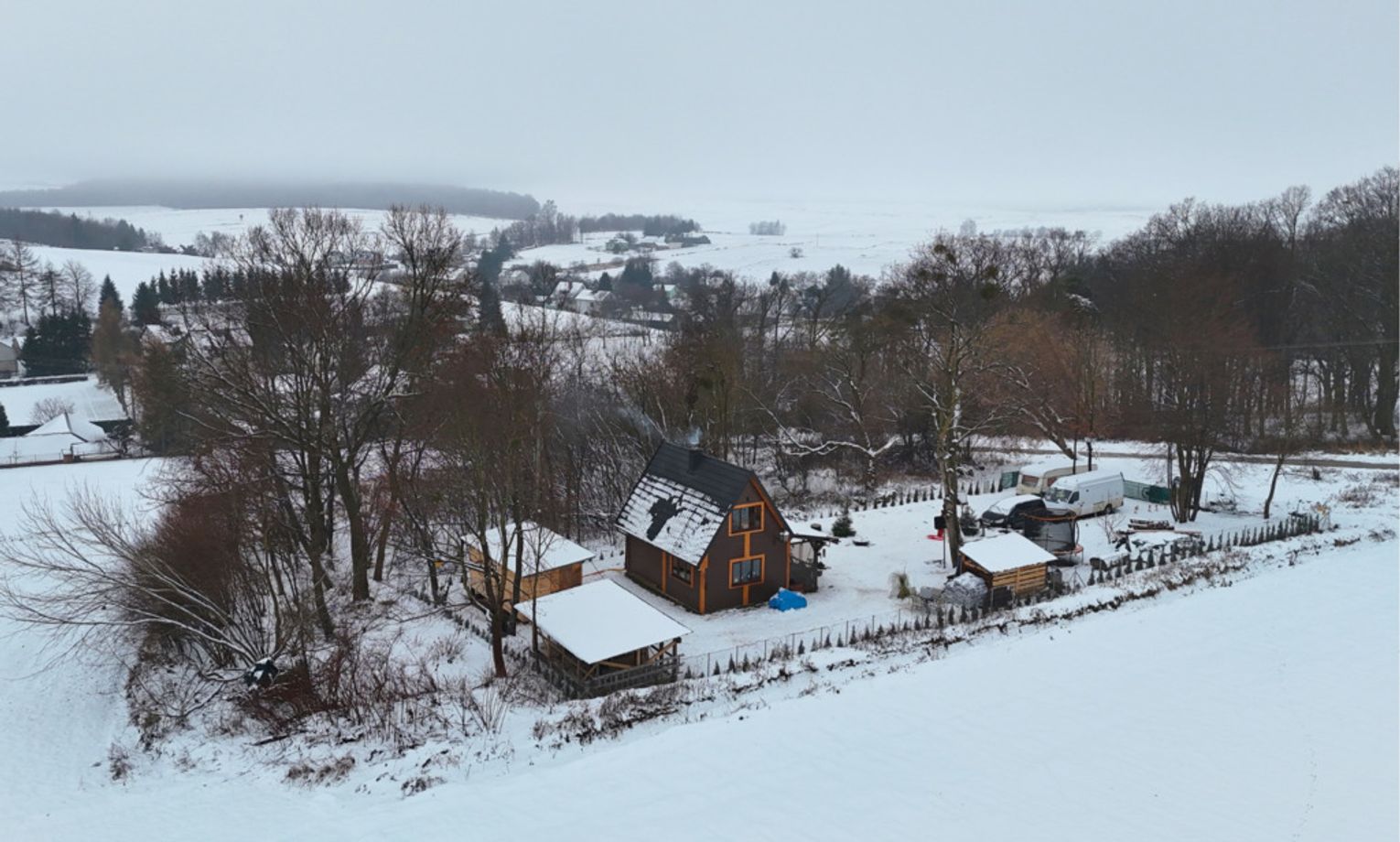 Nieruchomość składa się z domu o powierzchni około 50 m2, położonym na ogrodzonej działce 10 arów, gdzie znajdziemy również duży kojec dla psów.