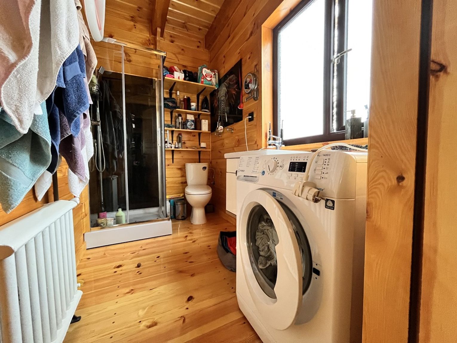 - Ogrzewanie zapewnione przez kominek z płaszczem wodnym i instalacją rozprowadzającą ciepło do grzejników w reszcie pomieszczeń.