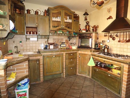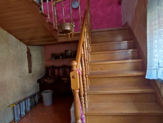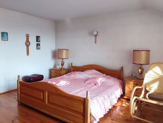 - Kuchnia – przestronna, z dębową zabudową meblową wyposażona w niezbędne AGD (wszystko sprawne)
