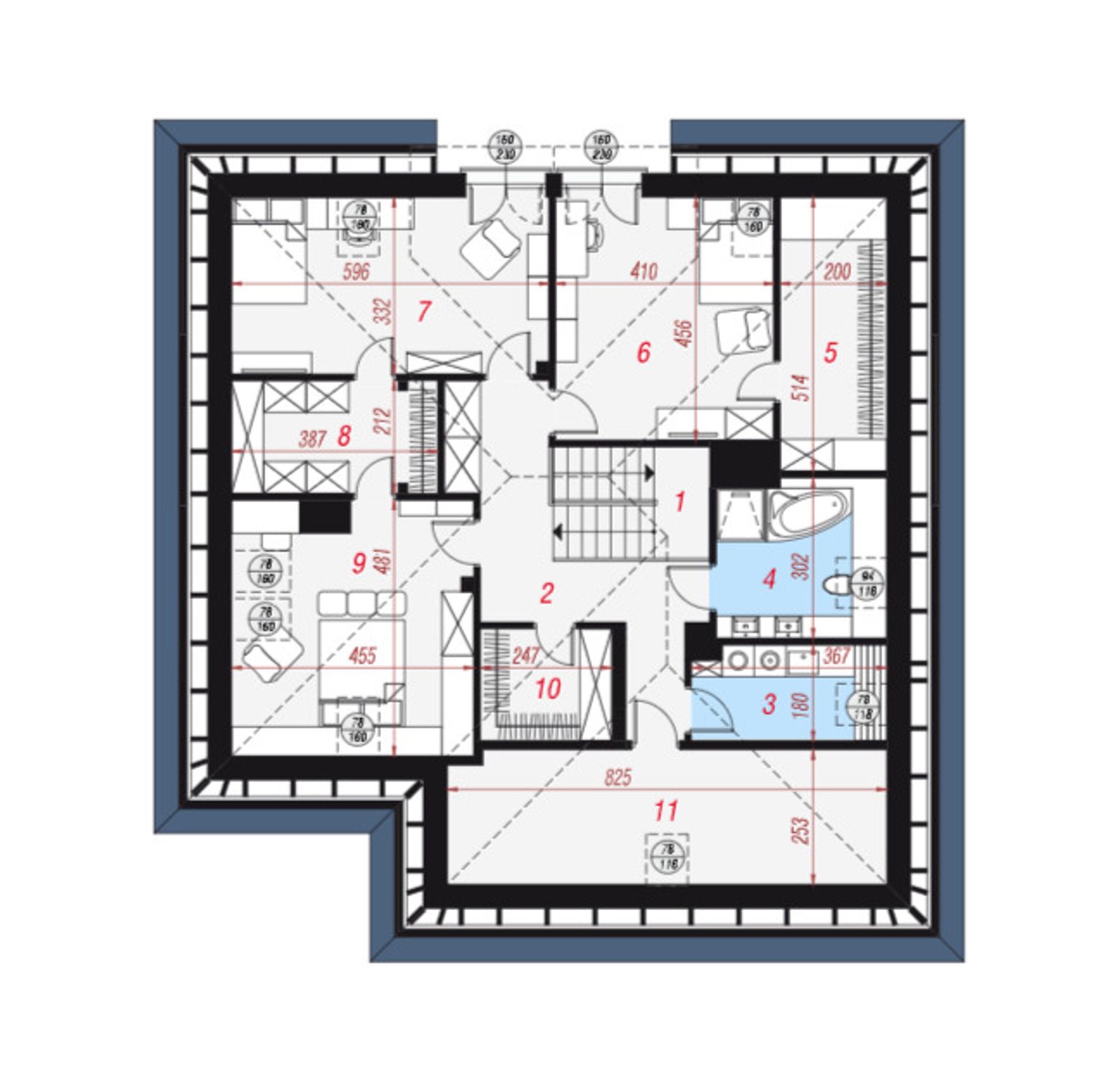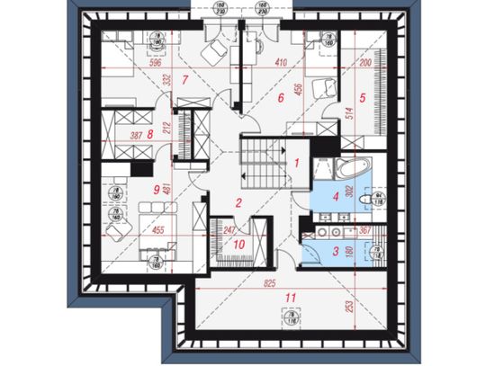 - Dach: czterospadowy, 35°, blachodachówk, okna FAKRO