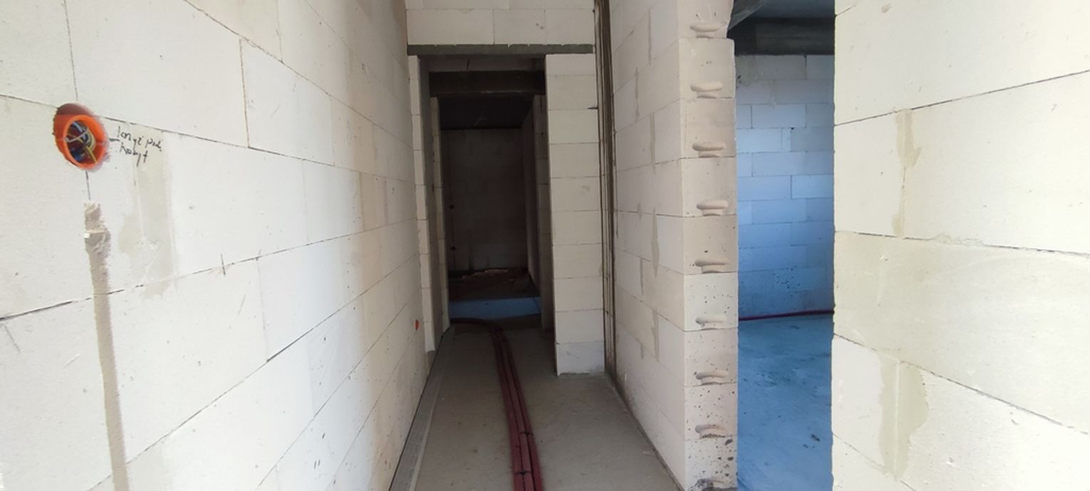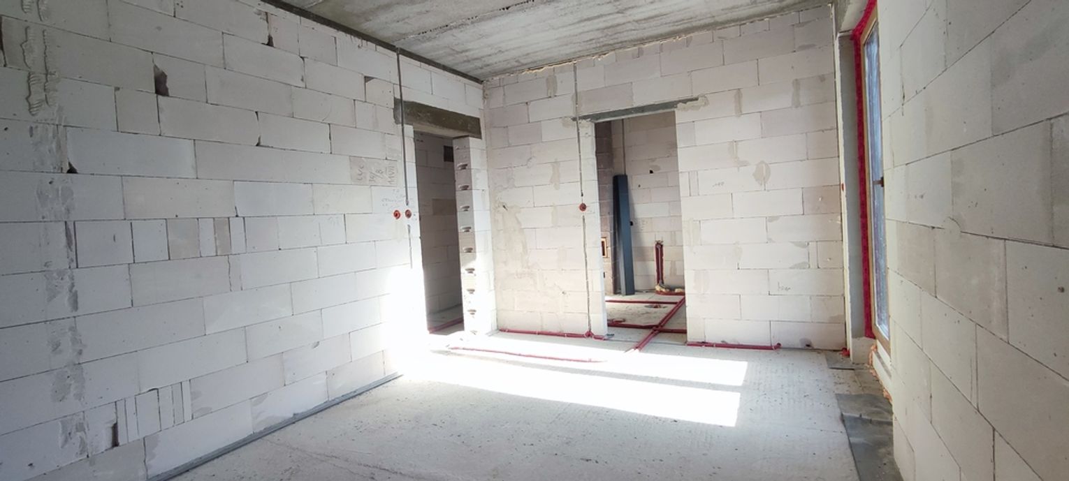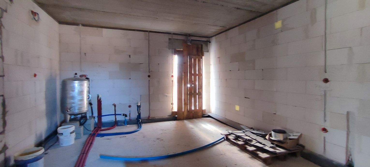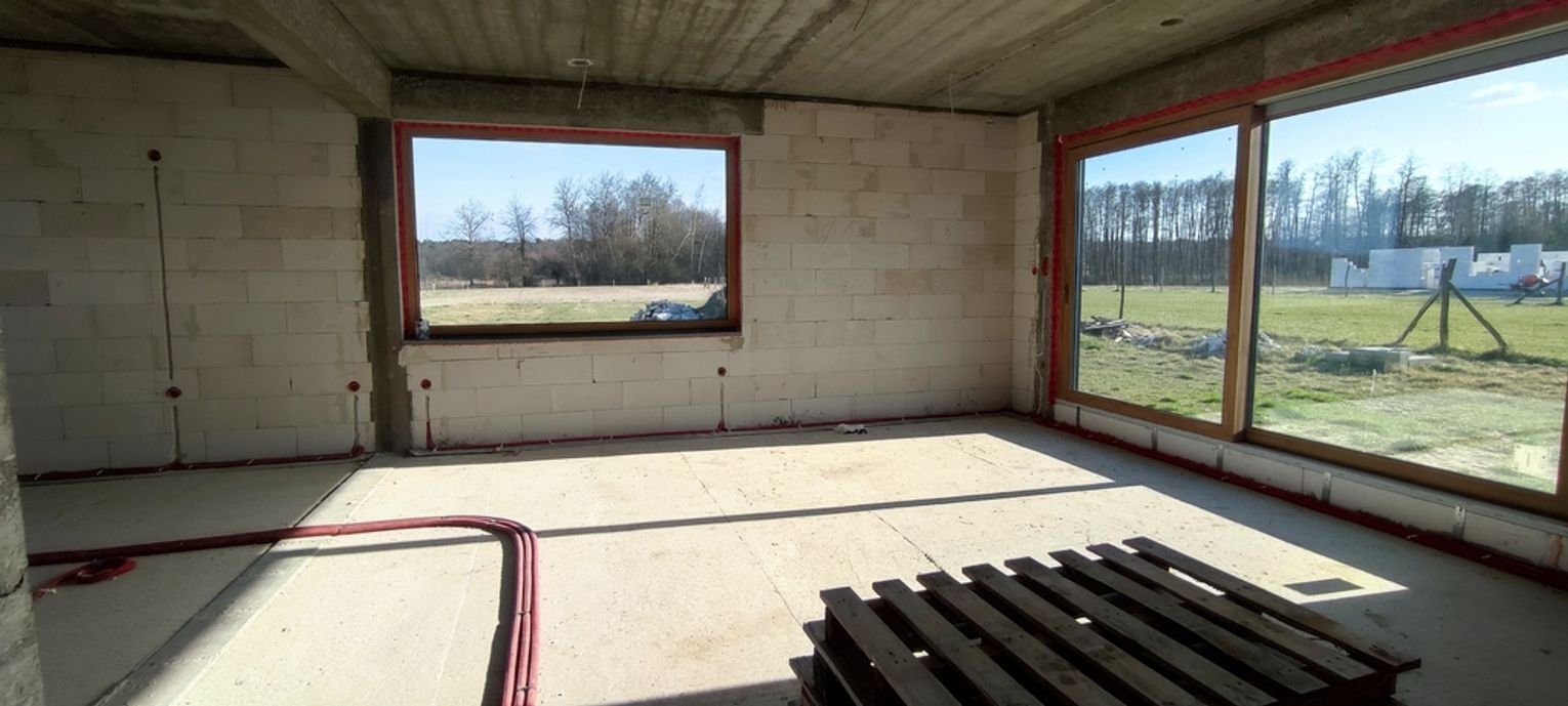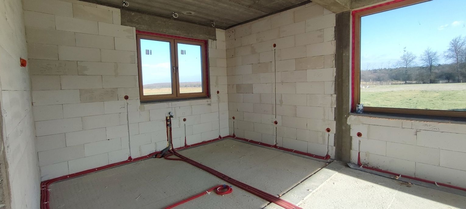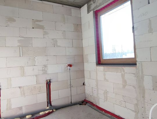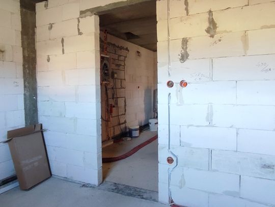 - Stan surowy zamknięty: wykonane ściany, dach (blachodachówka), okna PCV 3 szybowe,