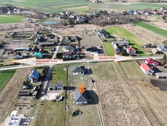 Dom znajduje się w spokojnej i zielonej miejscowości Zarzecze, zaledwie kilka minut jazdy od Zamościa. To idealne miejsce dla rodzin z dziećmi, osób pracujących zdalnie lub wszystkich, którzy marzą o ucieczce od miejskiego zgiełku, ale z dostępem do miasta.