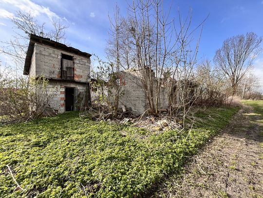Na działce znajdują się ruiny budynku gospodarczego oraz pozostałość fundamentów domu, którego budowa nie została zakończona. Budynek gospodarczy jest w złym stanie, materiał z rozbiórki jego murów z powodzeniem może zostać przeznaczony na materiał budowlany - utwardzenie drogi czy fundamentów w nowej inwestycji.