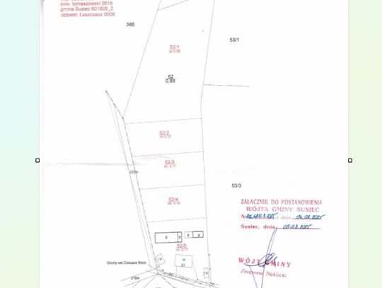 • Działka nr 52/1 – 38 arów (szczegóły do uzgodnienia)