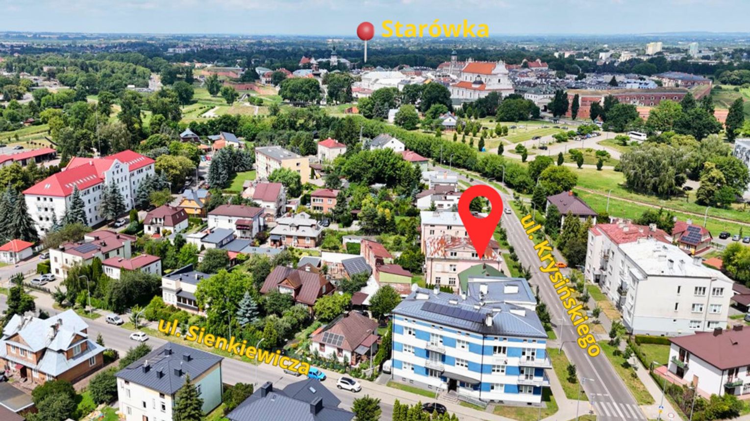 Lokalizacja inwestycyjna – centrum Zamościa Ulica Krysińskiego, kilka minut pieszo od Starówki. Stabilna lokalizacja pod wynajem długoterminowy, krótkoterminowy lub działalność usługową.