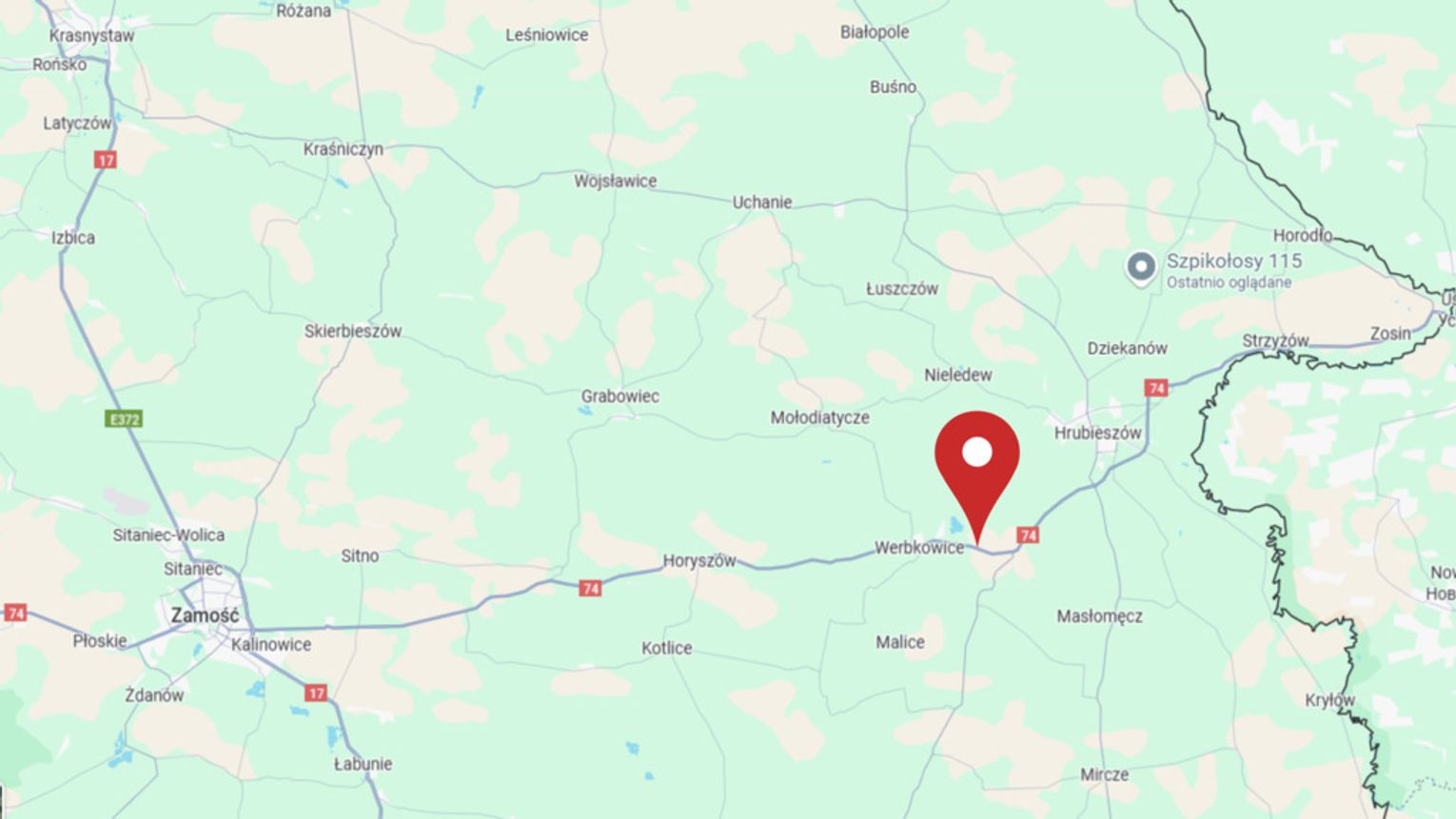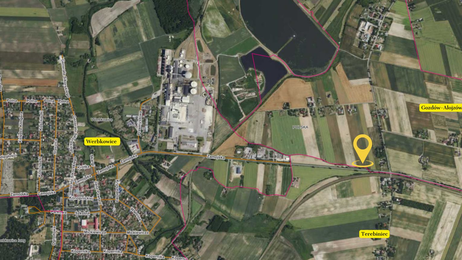 Działka położona na granicy Alojzowa i Werbkowic przy trasie łączącej Zamość z przejściem granicznym w Zosinie (Ukraina).
