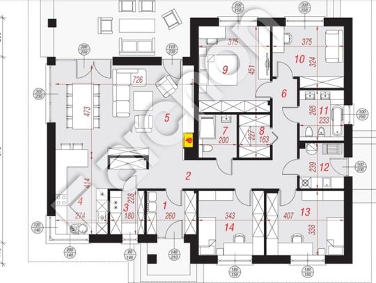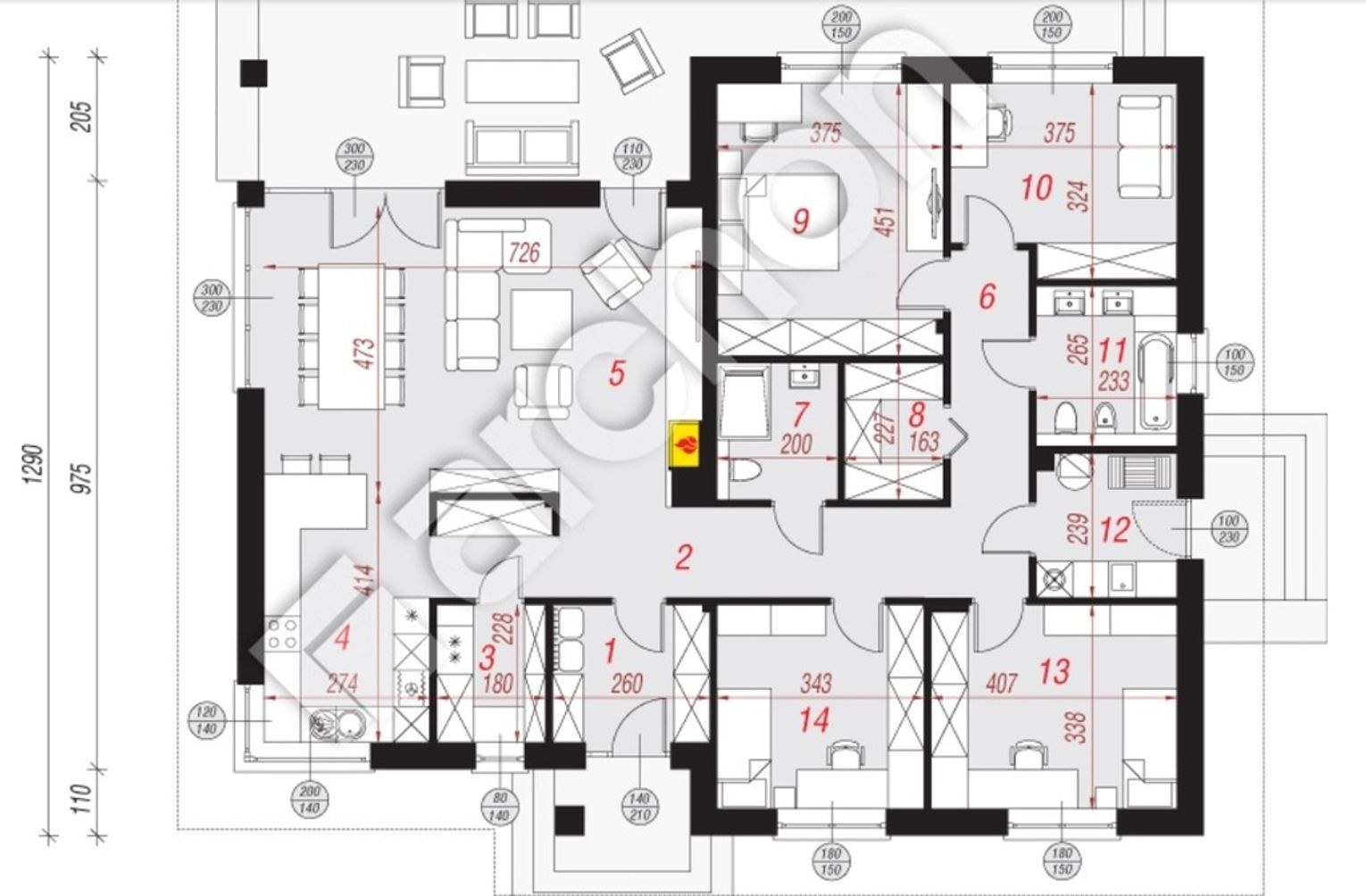 Układ pomieszczeń (projekt Dom w Alwach 3):