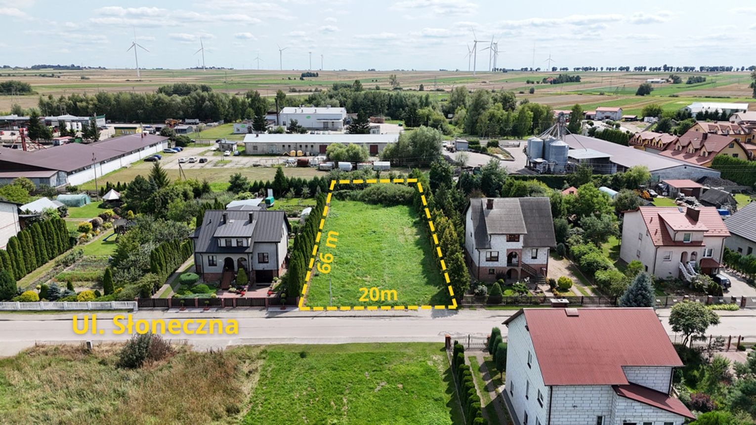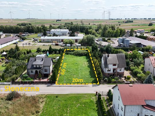 Działka posiada bezpośredni, wygodny, asfaltowy dojazd z chodnikiem i oświetleniem ulicznym ul. Słonecznej – tu nie będziesz się martwić błotem czy brakiem światła po zmroku.