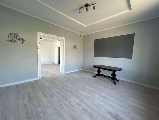 Na parterze znajduje się wiatrołap, który prowadzi do kotłowni z piecem węglowym oraz pomieszczenia komunikacyjnego. Z tego miejsca dostaniemy się do łazienki z prysznicem, przestronnej i jasnej kuchni oraz do pokoju, który możesz zaadaptować według własnych potrzeb. Parter uzupełniają dwa duże, jasne i ustawne pokoje z nowymi panelami na podłogach.