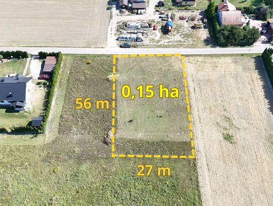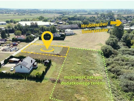 - Teren lekko pochyły, wyrównana powierzchnia – gotowa do rozpoczęcia inwestycji