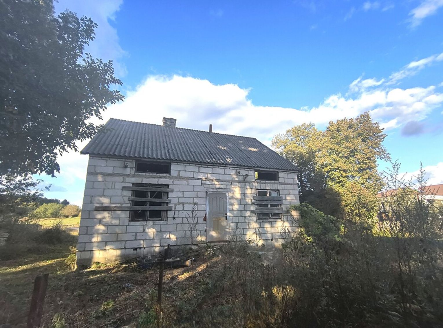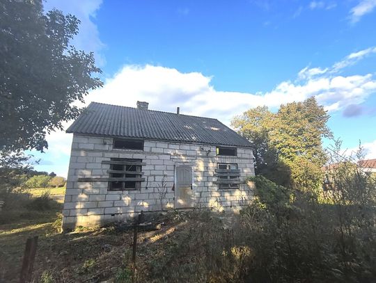 - Murowana obora – solidna konstrukcja z potencjałem na budynek gospodarczy, garaż lub warsztat,