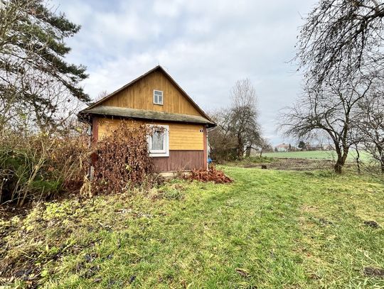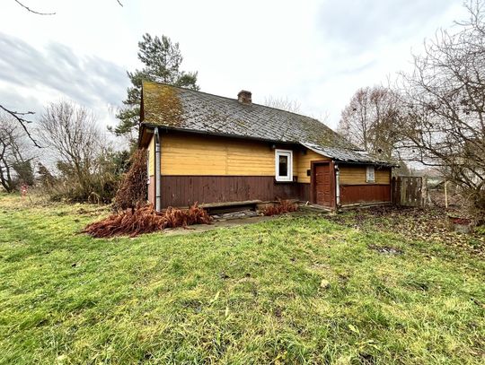 Dom o konstrukcji drewnianej ma około 50m2 powierzchni. W budynku znajdują się dwa pokoje, kuchnia i łazienka. Budynek od kilku lat stoi nieużywany, jednak na czas budowy/adaptacji działki swobodnie może posłużyć jako tymczasowe schronienie lub miejsce magazynowania.