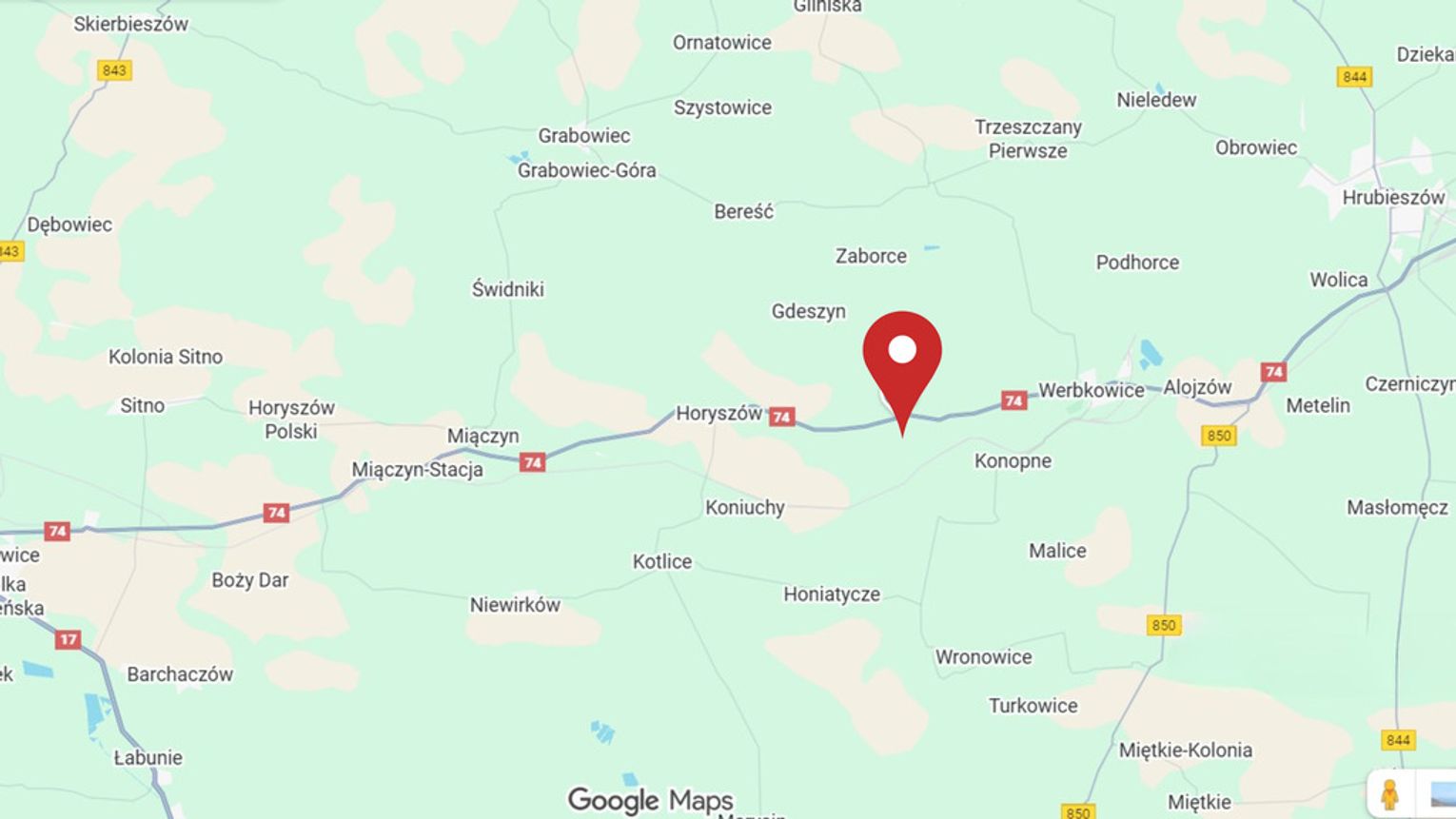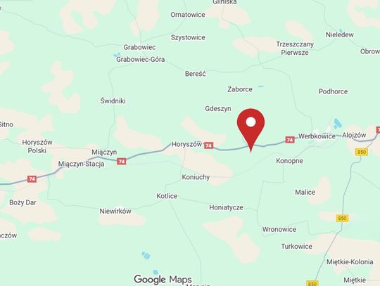 * Działka leży przy Drodze Krajowej nr 74, 32 km na wschód od Zamościa i 18 km na zachód od Hrubieszowa.