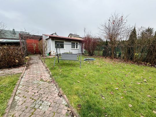 - Prywatność: Frontowa część otoczona jest ładnie zagospodarowanym ogrodem i wysokimi tujami, gwarantującymi pełną dyskrecję.