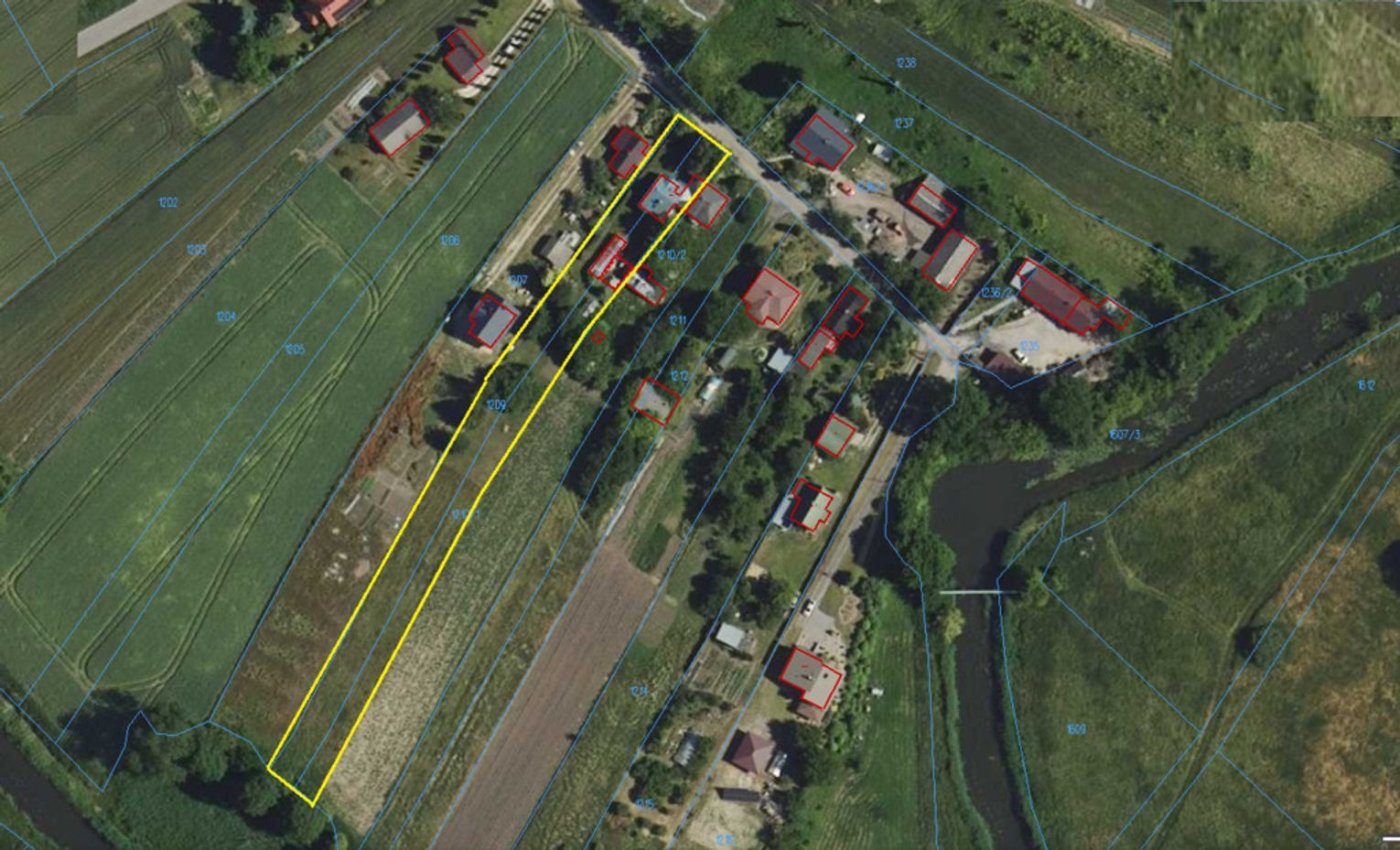 Nieruchomość posadowiona na działce o powierzchni 27 arów, częściowo ogrodzonej. Na działce rośnie sporo drzew iglastych, które tworzą zieloną, przytulną przestrzeń. W sąsiedztwie znajdują się podobne domy jednorodzinne – spokojna, okolica z miłym sąsiedztwem. Od południowej strony działka graniczy z rzeką Huczwą. Rozległy teren daje możliwość uprawy własnego ogrodu lub sadu lub przekształcenia zgodnie ze swoimi potrzebami gospodarczo- zawodowymi. Dodatkowym atutem jest budynek gospodarczy lekkiej konstrukcji, który może służyć jako garaż.