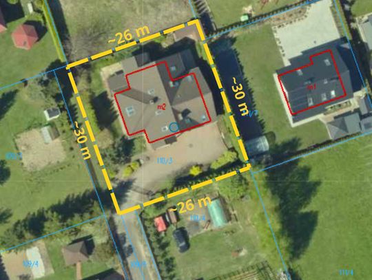 - Powierzchnia działki: 0,0809 ha (809 m²)
