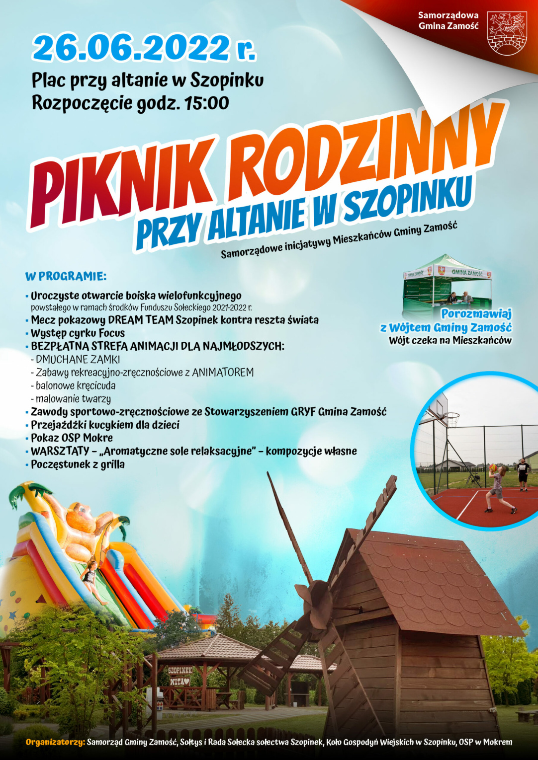 Organizatorzy: Samorząd Gminy Zamość, Sołtys i Rada Sołecka sołectwa Szopinek, Koło Gospodyń Wiejskich w Szopinku, OSP w Mokrem