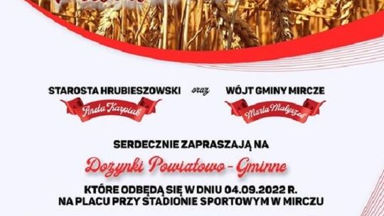 Dożynki powiatowo-gminne odbędą się 4 września w Mirczu na placu przy stadionie sportowym. Po części oficjalnej zaplanowano rozrywkową. Gwiazdą wieczoru będzie Szymon Wydra z zespołem Carpe Diem.