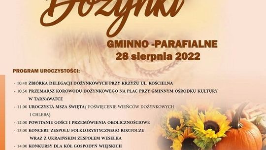 Mieszkańcy gminy Tarnawatka dożynki będą świętowali 28 sierpnia w Tarnawatce. W trakcie dożynek zostanie rozstrzygnięty konkurs na najpiękniejsze wieńce dożynkowe.
