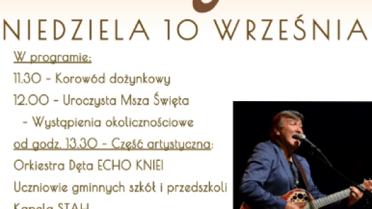 Wokalista Andrzej Rybiński będzie gwiazdą tegorocznych, zaplanowanych na niedzielę (10 września) gminnych dożynek w Szczebrzeszynie. Święto plonów rozpocznie się na szczebrzeszyńskim rynku korowodem o godz. 11.30. Więcej szczegółów na plakacie.