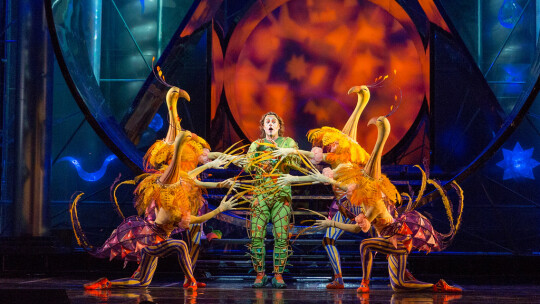 Różne drogi prowadzą do operowego świata. Julie Taymor na początku lat 90. wyreżyserowała filmową wersję opery-oratorium „Król Edyp” Strawińskiego, wykorzystując wielkie ruchome lalki; producentem przedsięwzięcia był Peter Gelb, obecny dyrektor Met. Taymor ma na swoim koncie także reżyserię „Fridy” z Salmą Hayek czy musicalu „Król Lew”. Jej wersja „Czarodziejskiego fletu” Mozarta to prawdziwe przedstawienie familijne z barwnymi kostiumami, bajkowym librettem, akcentami komediowymi i wielkimi animowanymi lalkami, poruszanymi m.in. za pomocą powietrza (flet to przecież instrument dęty). Książę Tamino i jego przyjaciel, zabawny ptasznik Papageno, muszą przejść próby, by zyskać wtajemniczenie i nagrodę: miłość idealnej dziewczyny. Na księcia czeka Pamina – córka Królowej Nocy, na ptasznika – podobna do niego kolorowo „opierzona” Papagena.