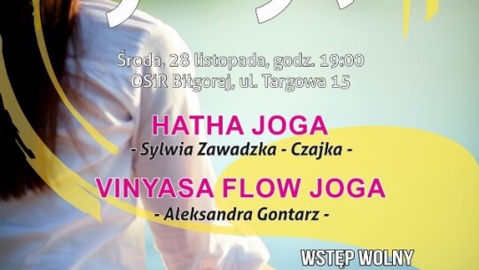 Ćwiczenia poprowadzą Sylwia Zawadzka-Czajka (Hatha Joga) i Aleksandra Gontarz (Vinyasa Flow Joga).